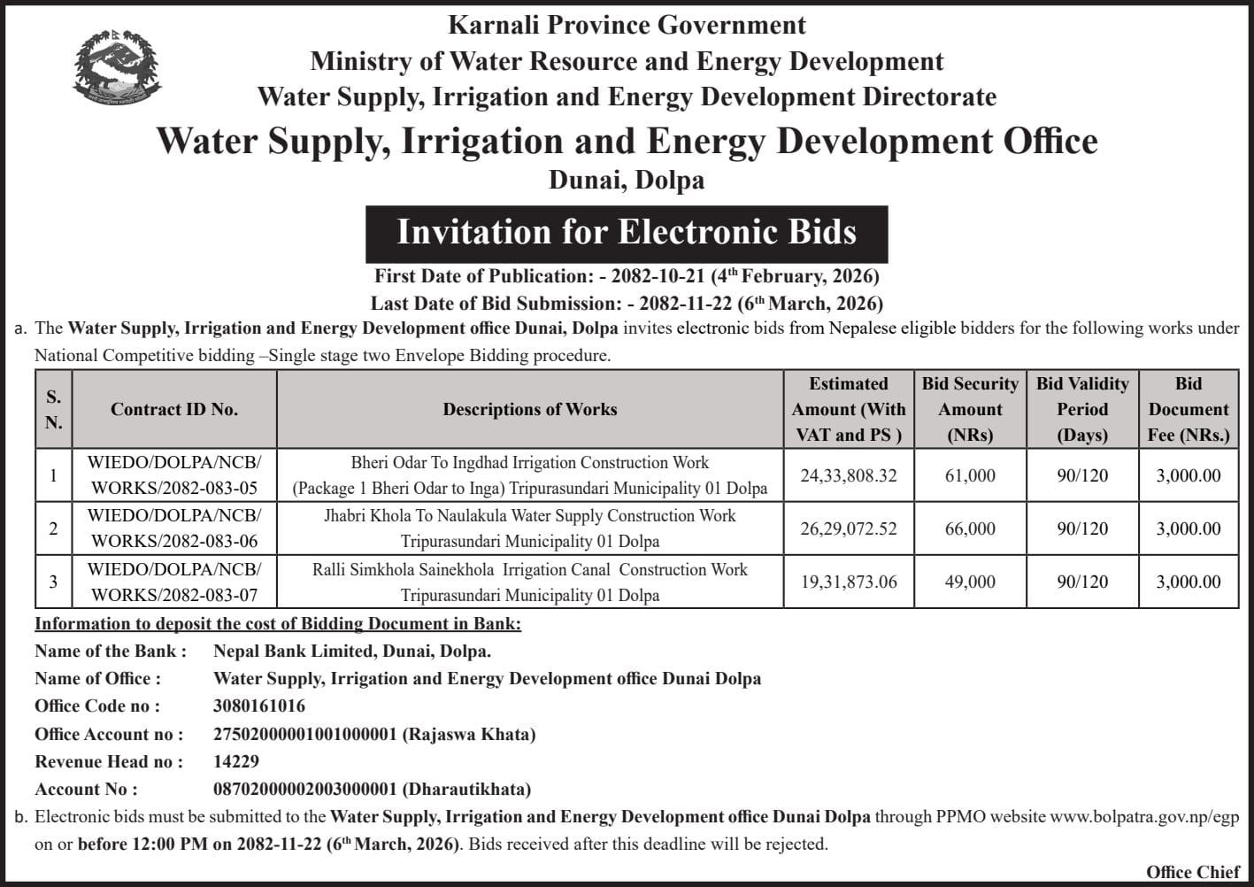 खानेपानी, सिंचाई तथा उर्जा विकास कार्यालय, डोल्पा