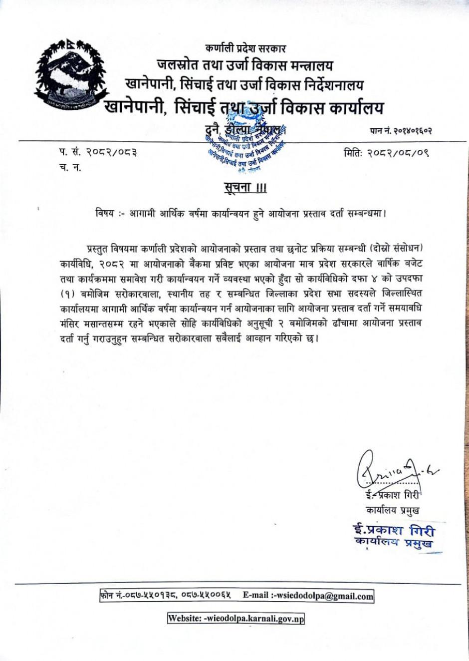 तस्बिर : आगामी आ.व. मा कार्यान्वयन हुने आयोजना प्रस्ताव दर्ता गर्ने सम्बन्धमा